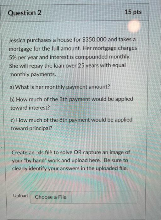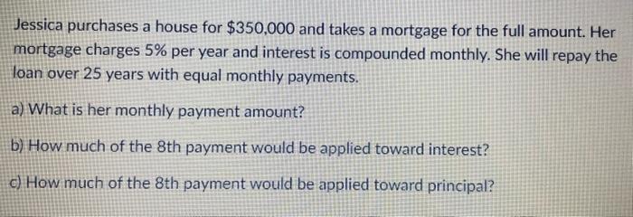 Solved Jessica Purchases A House For 350 000 And Chegg Com
